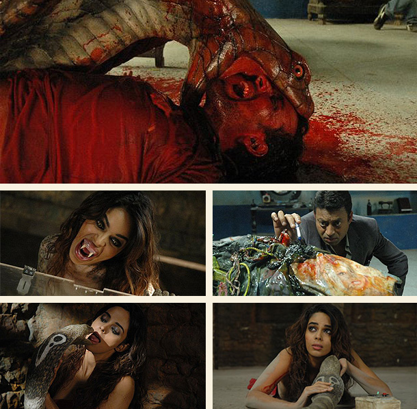 Mis expectativas ante Hisss venían por varias razones. La principal, su directora. Por si alguien lo dudaba, Jennifer Chambers Lynch es la hija del mismísimo David Lynch. Aprovechando en enchufe se inició bien jovencita como directora con una tontería como Mi obsesión por Helena (Boxing Helena, 1993), y luego, supongo, fumo algunas sustancias alucinógenas de las caras que la mantuvieron ausente hasta que despertó, hace tres años, con la más interesante Vigilancia (Surveillance). No piensen que aquella fue la gran cosa, pero desde luego apuntaba unas maneras en el manejo de suspense, la atmosfera y la narración que permitían a la muchacha subir el escalón pendiente. No sin polémica, Vigilancia venció en el Festival de Sitges de aquel año. El nuevo paso de Lynch estaría, definitivamente, enmarcado en el género fantástico y el terror propiamente dichos: la puesta en imágenes de la leyenda india de la diosa serpiente, rodada en Bollywood con actores y equipo técnico de allá, pero un presupuesto más holgado (tampoco mucho) debido a la colaboración con Estados Unidos.