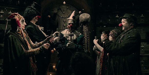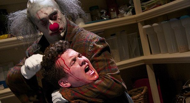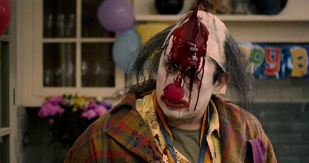 McMahon marca el tono de la película desde el mismo prólogo, en el que Stitches se nos presenta como un sucedáneo del Capitán Spaulding: grosero, cínico, violento, borracho…una joya, vamos. Ese sentido del humor pasado de rosca está presente también en las escenas violentas y eleva la media de Stitches muy por encima de lo que cabía esperar a priori. Cada ejecución que lleva a cabo el resucitado clown es en sí misma una oda al gore como entretenimiento. Haciendo uso de los objetos y trucos propios del kit de payaso a domicilio, el director se recrea con habilidad en la crueldad de éste para torturar y asesinar a los estereotipados adolescentes que un día se burlaron de él y acabaron accidentalmente con su vida. Y no solo es aplaudible la imaginación para poner en escena esas estampas de sangre y vísceras, sino también el método usado para diseñarlas, ya que otro de los puntos a favor de la película es que tira del maquillaje artesanal antes que de CGI, lo que hace mucho más meritorio el resultado.