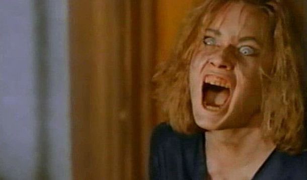 El argumento de Killer Party es toda una declaración de intenciones: hermandades, bromas, posesiones demoníacas, casas encantadas… Esta película es lo más parecido a “Scream” que pudieron ver los espectadores de la época. Y la referencia a la película de Craven no es casual: siempre se suele situar como precedente de la misma “Student Bodies” (1981, Mickey Rose), pero mientras ésta es abiertamente una comedia, la película de Fruet se toma a guasa el género… pero con la seria intención de formar parte de él. Así que vamos a encontrarnos todas y cada una de las convenciones del género en ella, tanto las introducidas a conciencia para ser parodiadas, como otras inconscientes que no ayudan a que la película destaque sobre otras. Por ejemplo, tenemos los personajes estereotipados de estos productos, pero en ningún caso con intención. Es decir, como los slashers de la época estaban poblados por adolescentes planos y generalmente odiosos, en ningún momento ni el director, William Fruet, ni el guionista, Barney Cohen, se plantearon intentar cambiarlos para diferenciarse. Además, el único montaje de la película que puede verse es irritantemente cauto a la hora de mostrar crímenes, sangre o violencia. Killer Party comenzó a rodarse en 1978, pero quedó inacabada hasta el 84; finalmente, se estrenó dos años después, pero en esa edición, la única exhibida y parece ser que conservada, no queda ni un sólo plano explícito de los asesinatos. Y no es la única estupidez de esa copia: muestra abiertamente desde el primer momento qué personaje es el poseído por el espíritu pero, luego, incomprensiblemente, oculta su identidad cuando comete los crímenes, como buscando sorprendernos al final con algo que nos ha desvelado ya al principio.