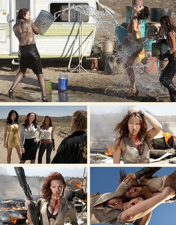 bitch slap esta tan conciente de no tomarse en serio a si misma y lo demuestra en los momentos en que aparecen las protagonistas: escenas bien filmadas y desde todos los angulos posibles como si realmente vieramos una pelicula “seria” que contrasta con los “flashbacks” que estan filmados de la peor manera posible como remarcando “esto no le importa a nadie, asi que lo hacemos asi nomas” :)