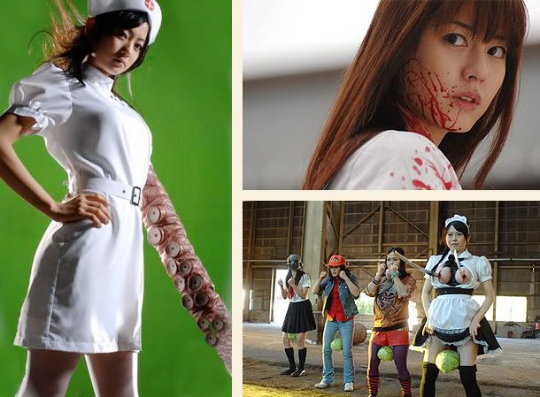 Cuando todavía estamos en proceso de digerir Vampire Girl Vs. Frankenstein Girl y el trailer de Robo-Geisha, tres de los gurús del nuevo fungore nipón – Yoshihiro Nishimura (Tokyo Gore Police), Noboru Iguchi (Machine Girl) y Tak Sakaguchi (Yoroi: Samurai Zombie) – unen sus fuerzas para dar forma a la penúltima locura del sol naciente… su título: Mutant Girls Squad.