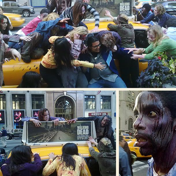 La campaña de publicidad llevada a cabo por AMC para promocionar The Walking Dead, el que sin duda es el plato fuerte de la temporada, televisivamente hablando, ha sido tremenda. El pasado 26 de octubre se produjo una auténtica invasión zombi a nivel mundial. Ciudades como Londres, Estambul, Atenas, Buenos Aires, Washington e incluso Madrid (entre muchas otras) vieron como sus calles eran tomadas por una horda de incontrolables muertos vivientes sedientos de sangre… y de potenciales televidentes.